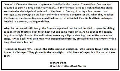 चित्र में एक राख-सा चेहरा लिए पारदर्शी आकृति दिखाई दे रही थी। उस दिन किसी ने भी उस आकृति को वहाँ नहीं देखा था। थिएटर में काम करने वाले कई लोगों को उसकी उपस्थिति का किसी न किसी तरह से अनुभव हुआ था।